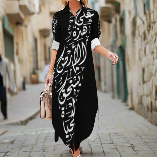 Palestinian Button Neck Long Sleeve Modest Shirt Dress