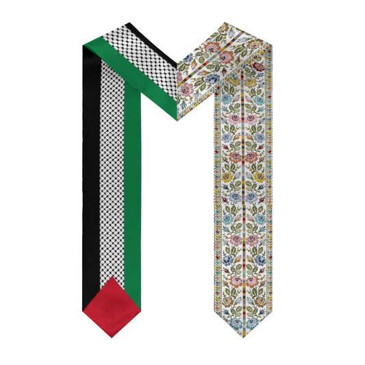 Palestinian Kuffiyeh Flag Floral Tatreez Print Sash