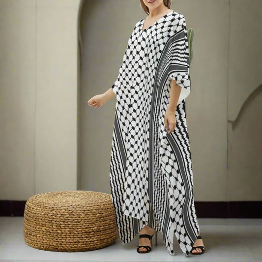Palestinian Kuffiyeh Women's Imitation Silk V-neck Kaftan Robe