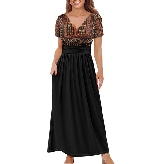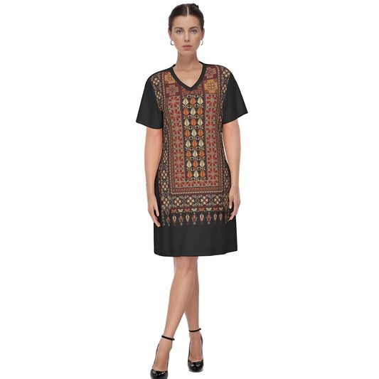 Palestinian Cotton Tatreez All-Over Print Women's V Neck Dress