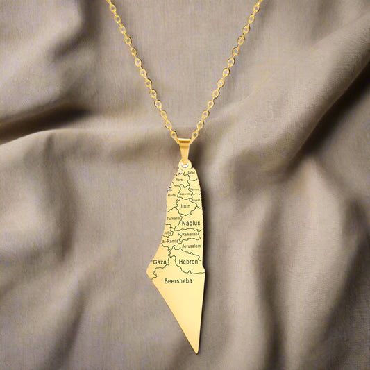 Palestine Map Arabic Script Palestinian Cities Pendant Necklace