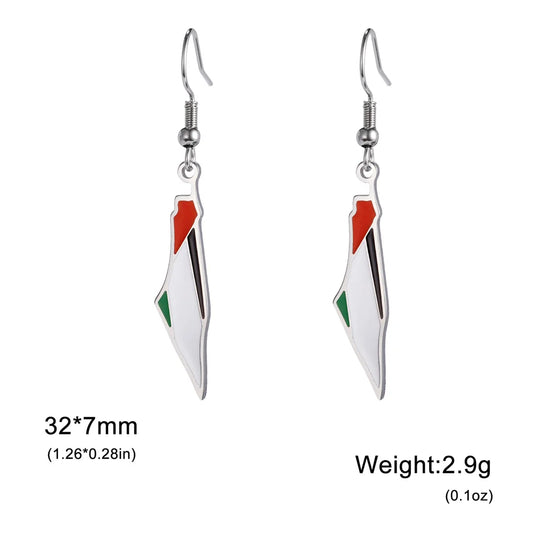 Palestine Map Drop Earrings for Women Stainless Steel Map