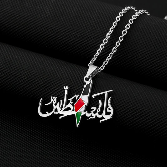 Palestine Map Flag Pendant Necklace Stainless Steel Jewellery