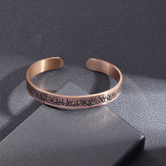 Ayatul Kursi Cuff Bangles for Women Gold Color Stainless Steel Arabic Bracelet