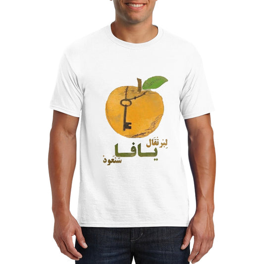 Palestinian Jaffa Pure cotton T-shirt with Key and Orange