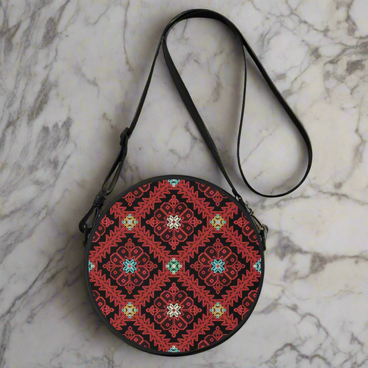 Round Satchel Bags, Palestinian Realistic print, cross stitch, pattern