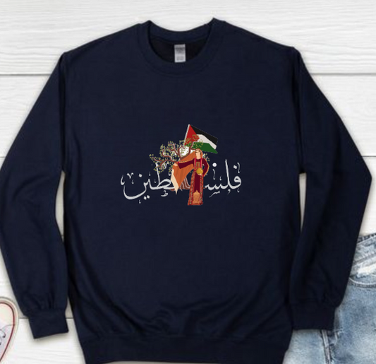 Palestine Flag Crewneck Sweatshirt, Unisex Gildan, Palestinian Thoub, Arabic Filisteen