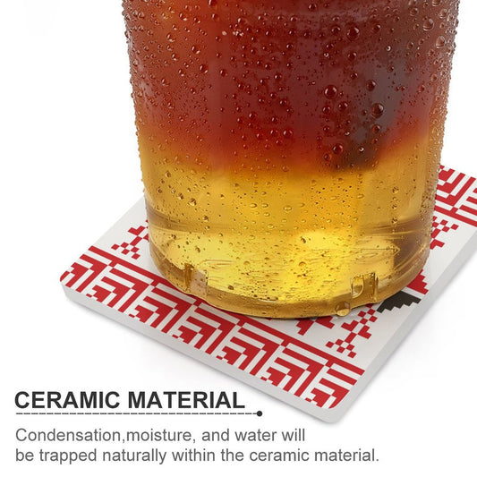 St. George Palestinian Tatreez Design Ceramic Coasters (Square) (4 or 6 Pieces)