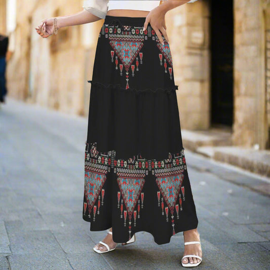Tatreez Skirt Tether High Waist Tiered Maxi Skirt