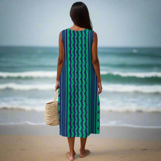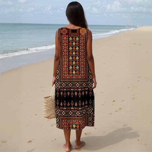 Tatreez All-Over Print Women's Sleeveless Dress|125GSM Slub Cotton