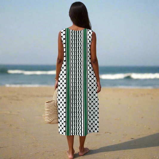 Keffiyeh All-Over Print Women's Sleeveless Dress|125GSM Slub Cotton