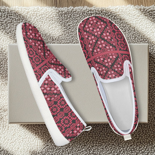 Ethnic Palestinian Tatreez Print Classic Low-Top Canvas Shoes - White