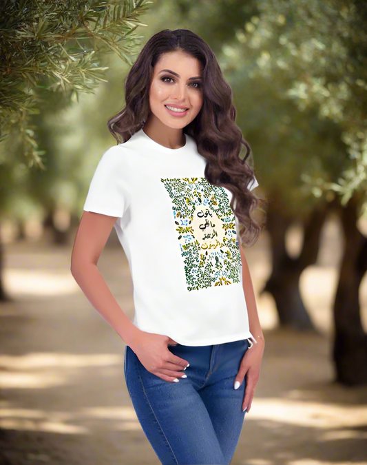 Palestinian Olive Zatar 100% Cotton white T-shirt (2D front and rear)