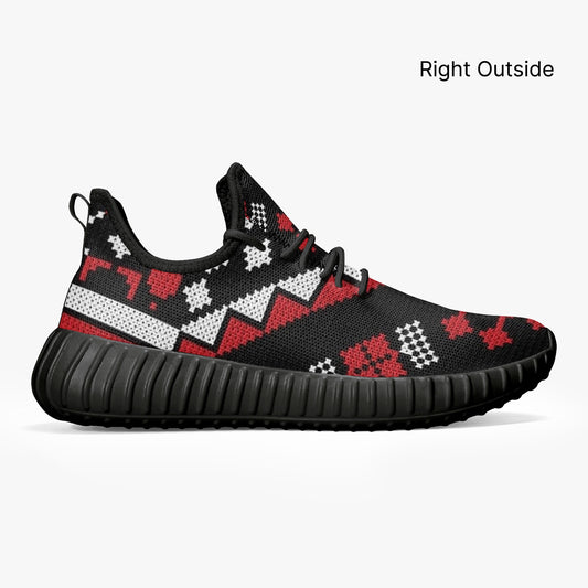 Ethnic Palestinian Tatreez Print Mesh Knit Sneakers - White/Black