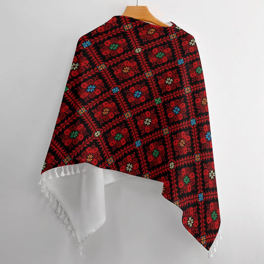 Palestinian Tatreez Print Fringed Knitted Tassel Poncho