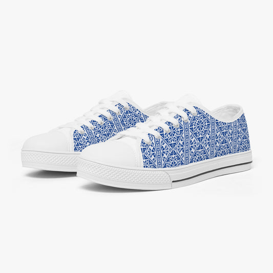 Ethnic Palestinian Tatreez Print Classic Low-Top Canvas Shoes - White