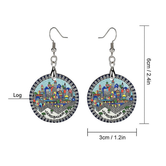 Palestinian Hebron Tatreez Wooden Earrings Pendant -
