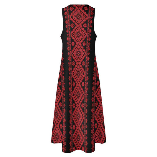 Palestinian Tatreez Print Sleeveless Long Dress Long dress, Red,