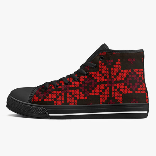 Ethnic Palestinian Tatreez Print Classic High-Top Canvas Shoes -Black