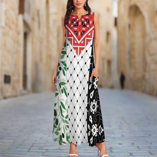 Palestinian Flag Keffiyeh Solidarity Sleeveless Long Dress