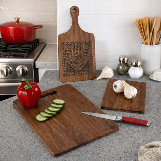 Premium Walnut Cheese or Cutting Board – Laser Engraved Palestinian Tatreez Pattern