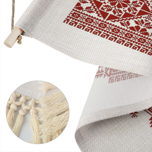 Tatreez Print Linen Tapestry with Tassel Cotton Linen Wall Hanging -
