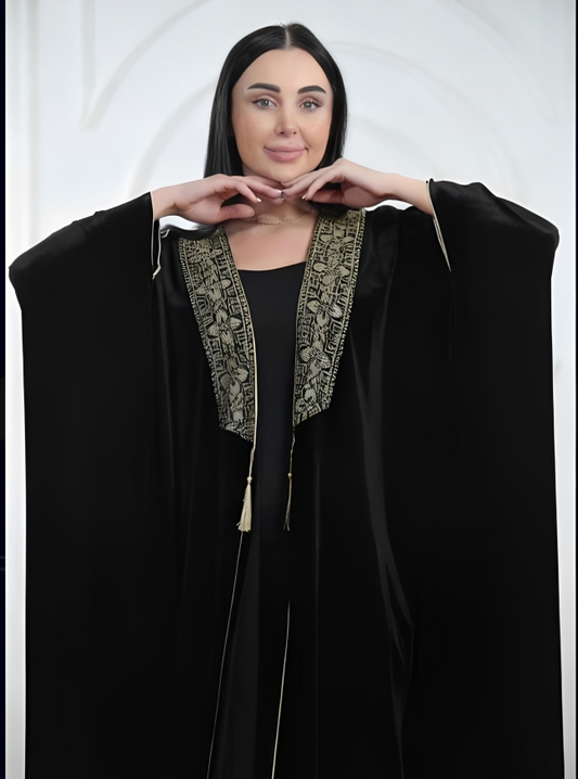 Arabian Woman handmade Tatreez lining Bisht Abaya