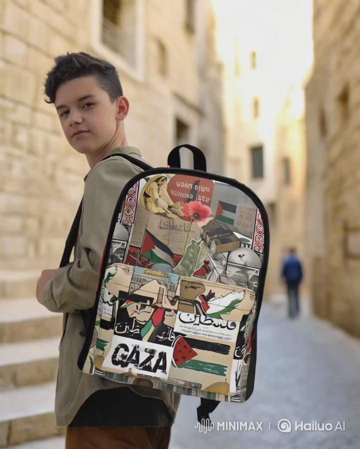 Palestinian Collage Backpack - 17 Inch Twill (PU) Leather Backpack