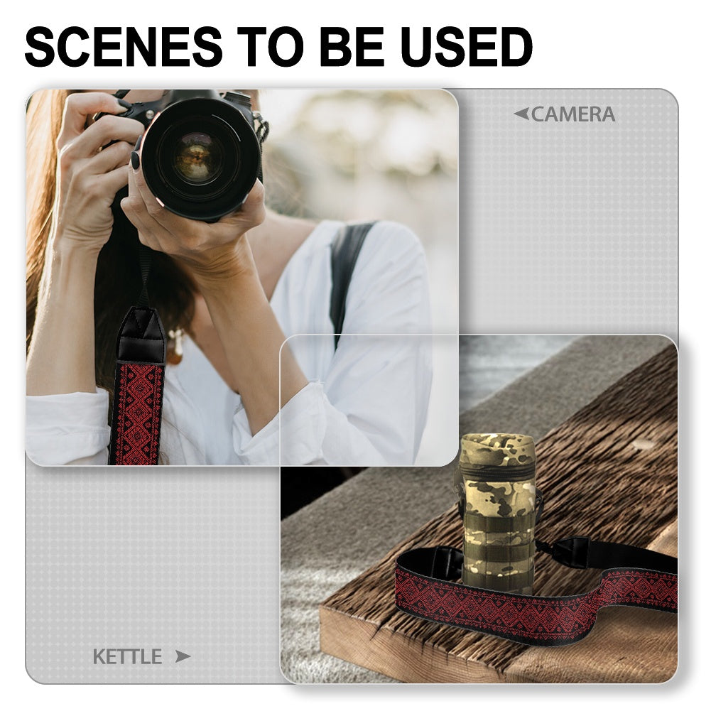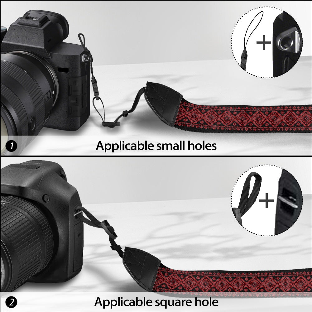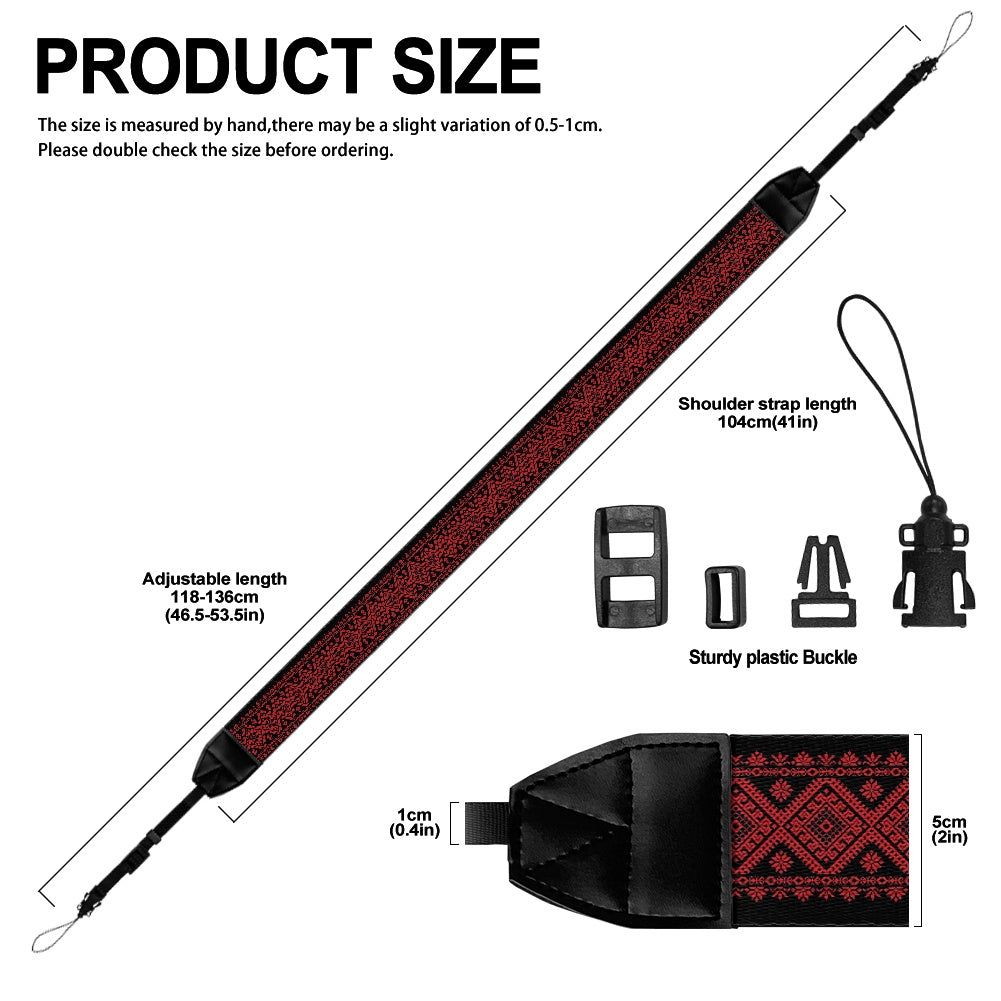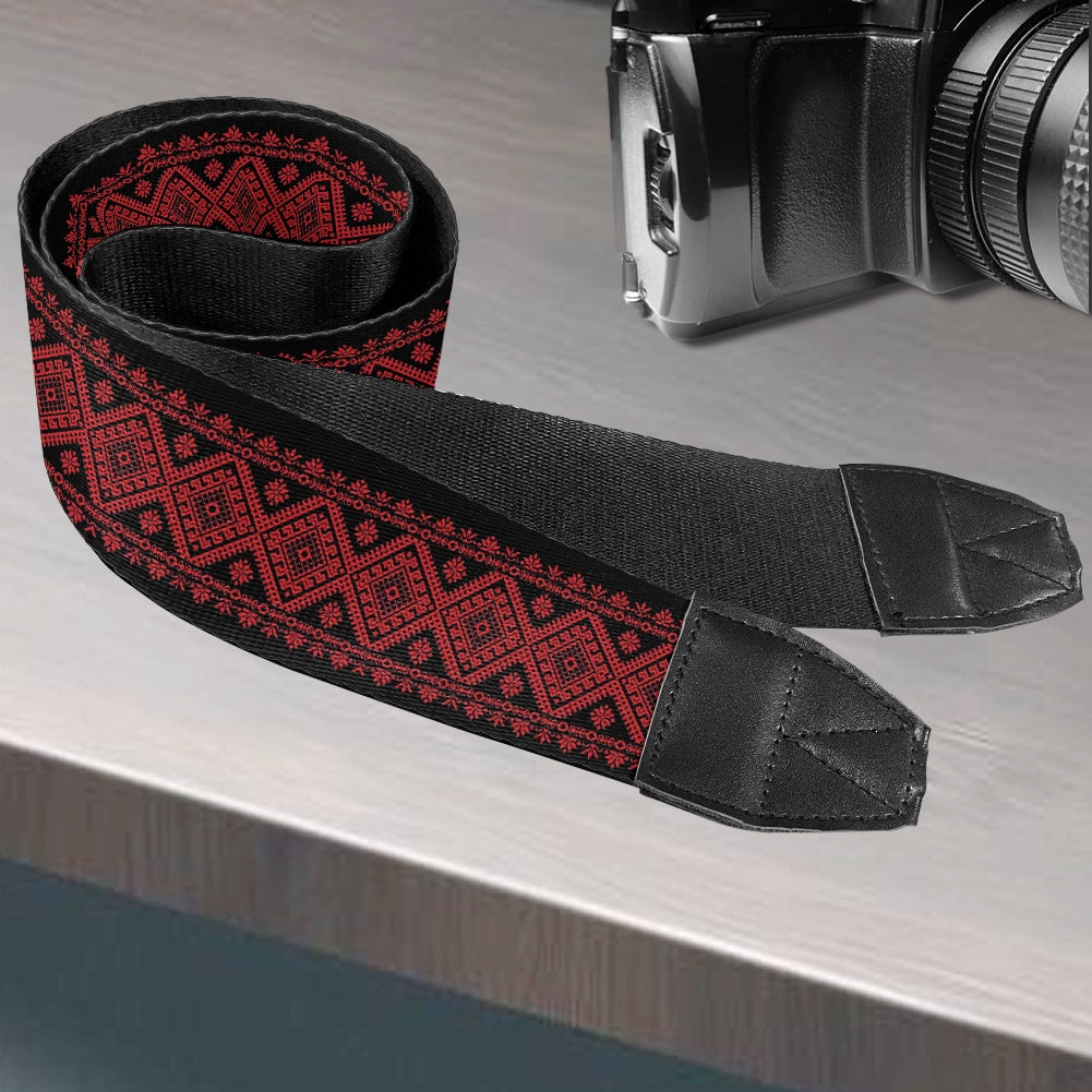 Enhance your photography gear with the beauty of Palestinian culture with our Tatreez Print Camera Strap. Perfect for professional and amateur photographers alike, it adds a unique and meaningful touch to your equipment while ensuring comfort and reliability