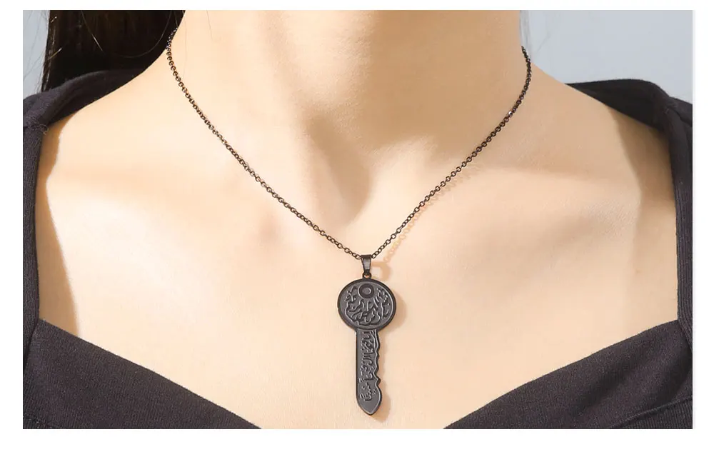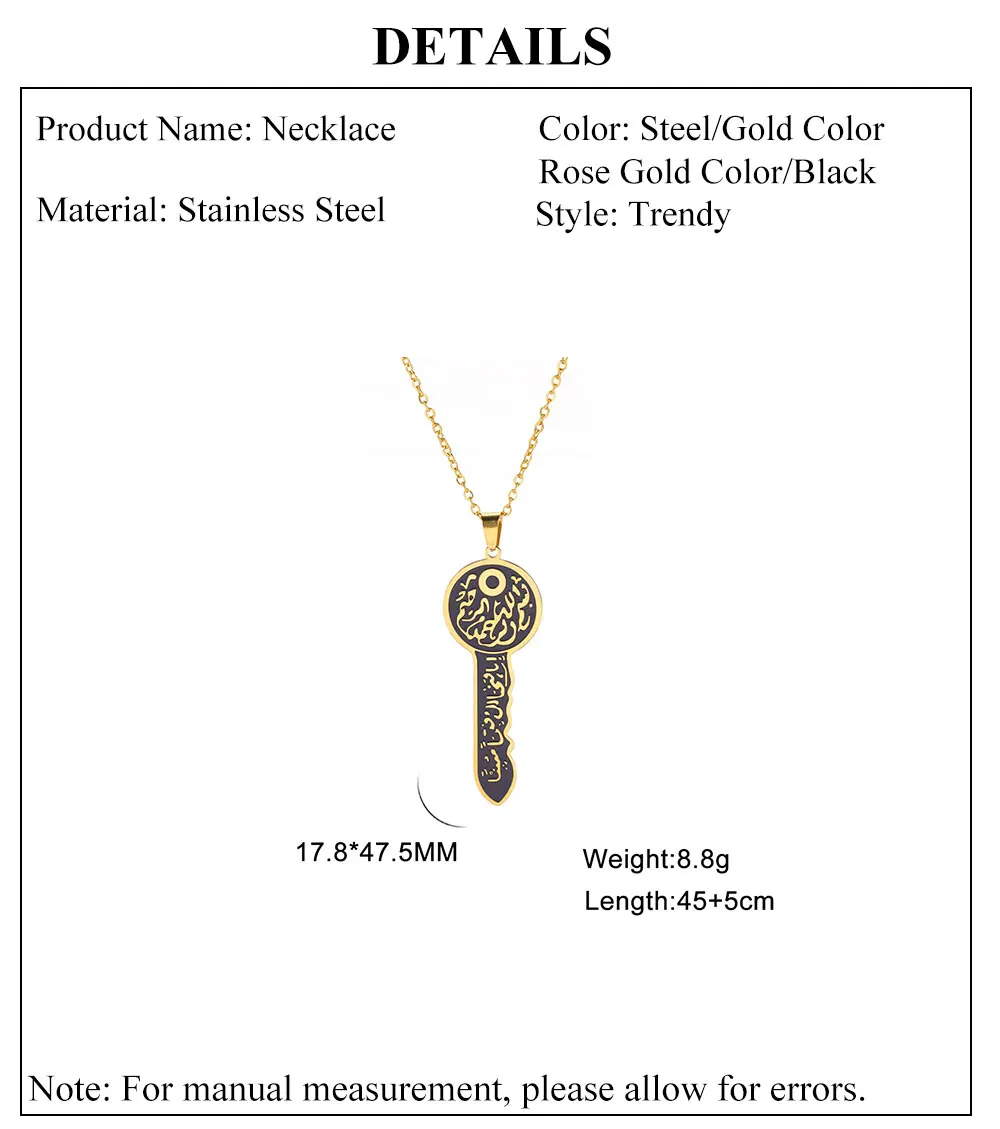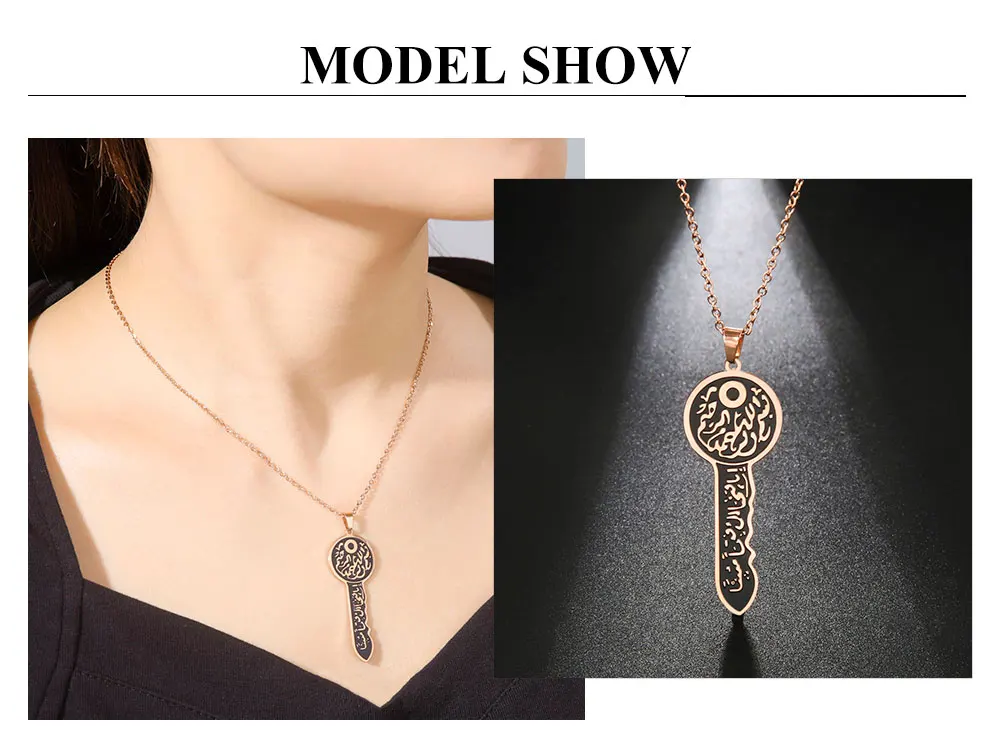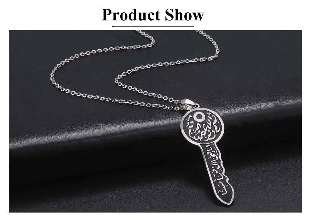 Cazador Vintage Arabic Islamic Key Pendant Necklace for Women Men Stainless Steel Chain on Neck Jewelry Wholesale Mother Gift
