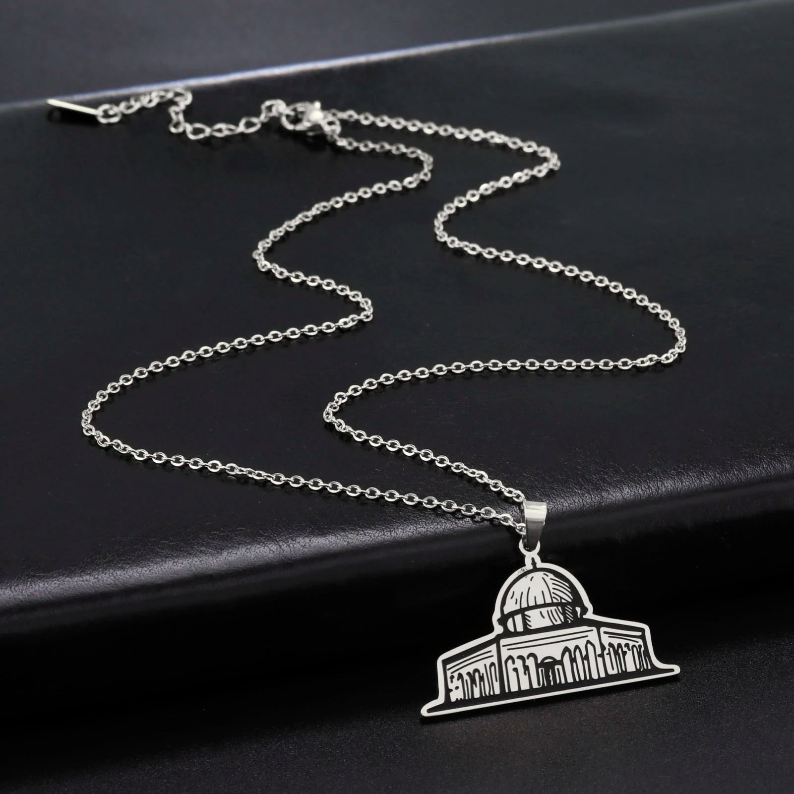 Vintage Islamic Dome of the Rock Mosque Jerusalem Pendant Women's Necklace Stainless Steel Jewelry