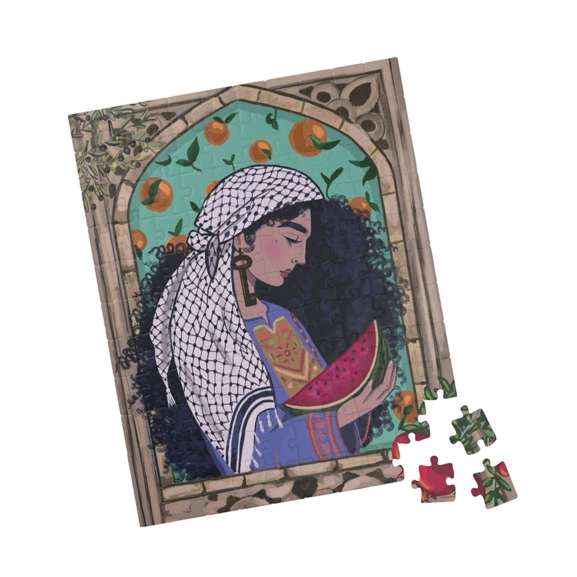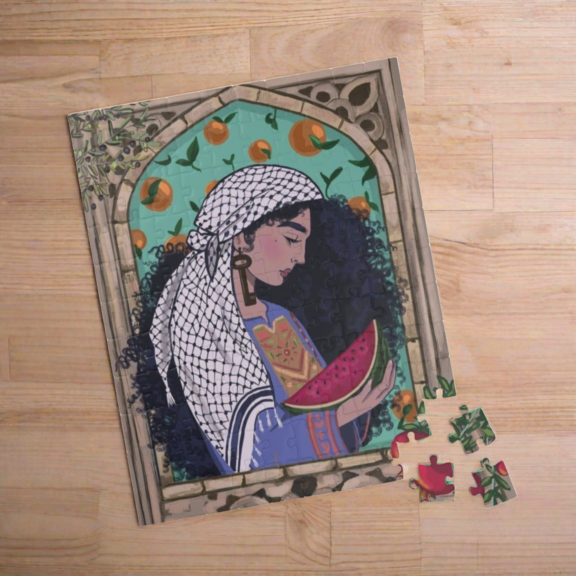 Palestinian Puzzle, The Girl with the Kuffiyeh, Watermelon, Eid Gift (110 pieces)