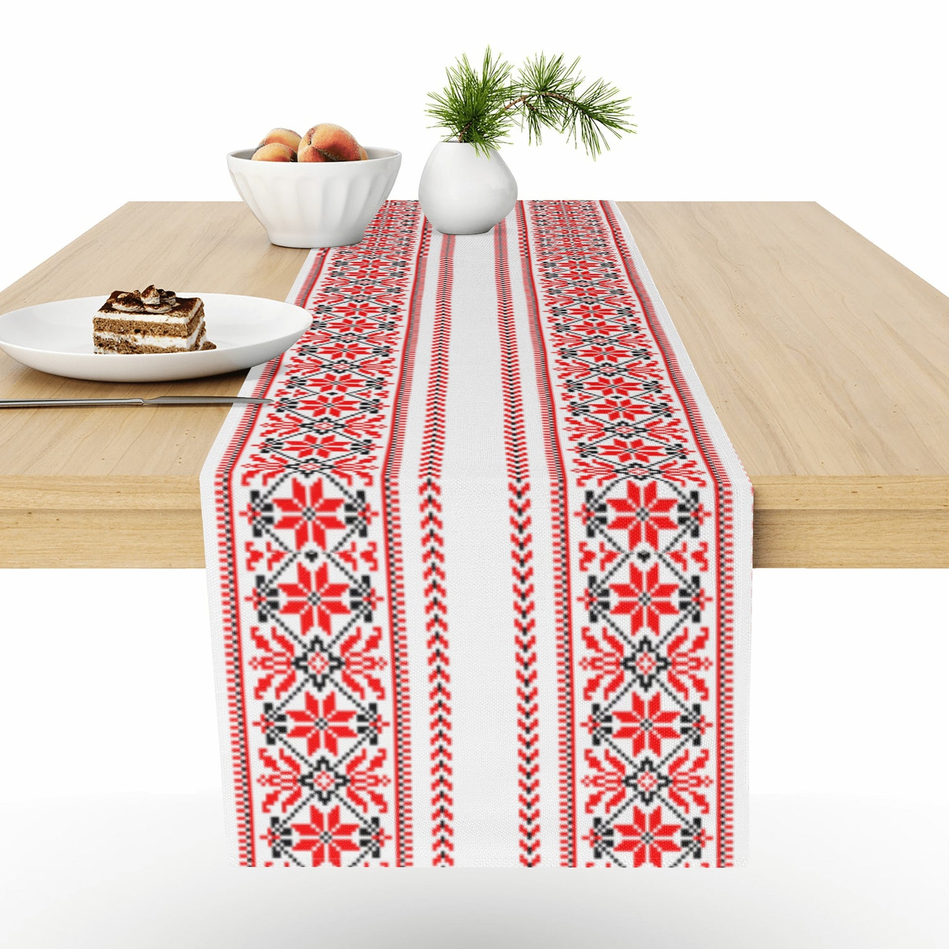 Maintaining this piece is as easy as it gets; it's machine washable and boasts no-fade and no-shrink properties, ensuring it retains its beauty and charm wash after wash. This table runner is more than just a home accessory, it's a testament to timeless Palestinian artistry, bringing a piece of cultural heritage into your home. Each print table runner is a symbol of creativity, authenticity, and the handcrafted quality that Tatreez Bazaar is renowned for. Order yours today and infuse your home with a touch of Middle Eastern charm.