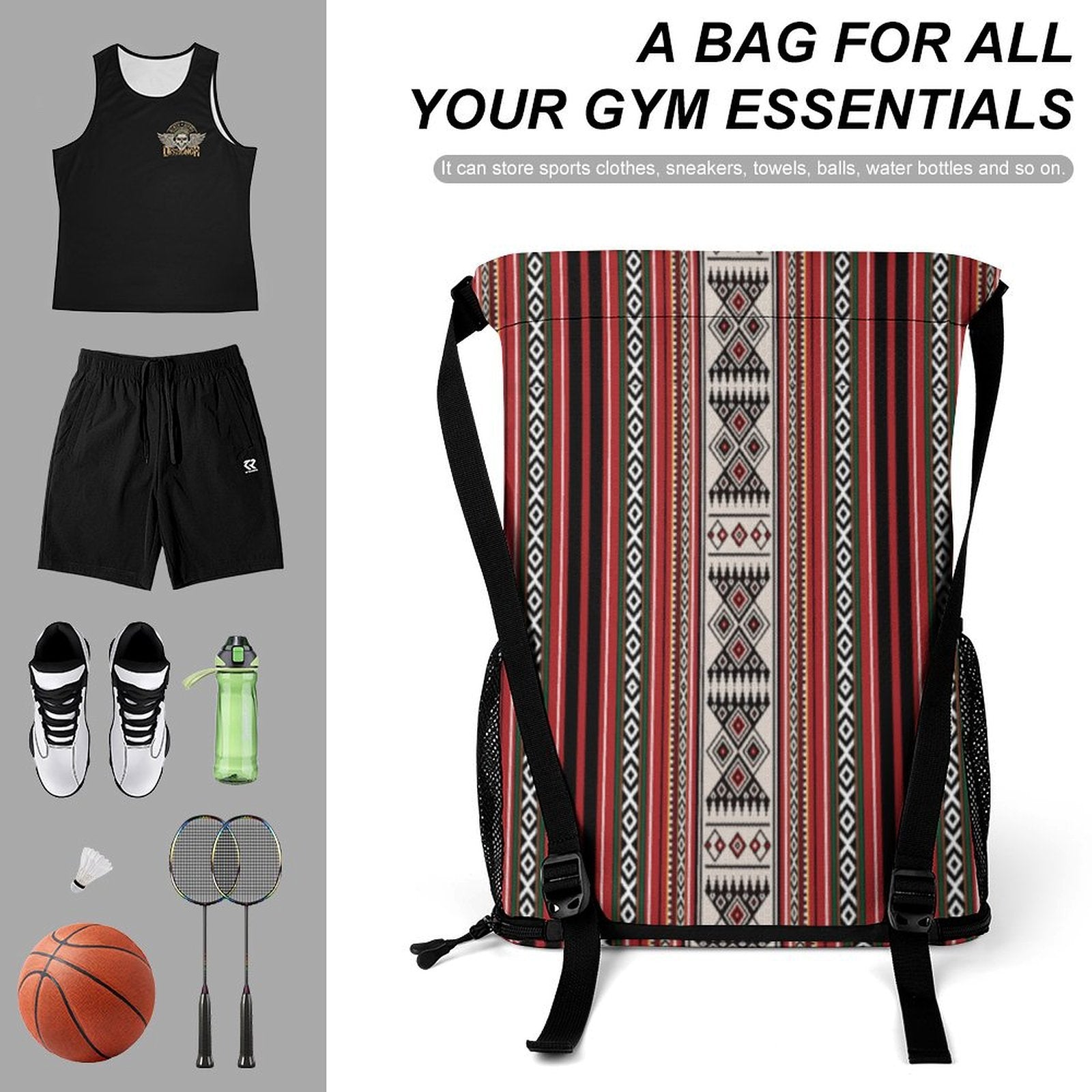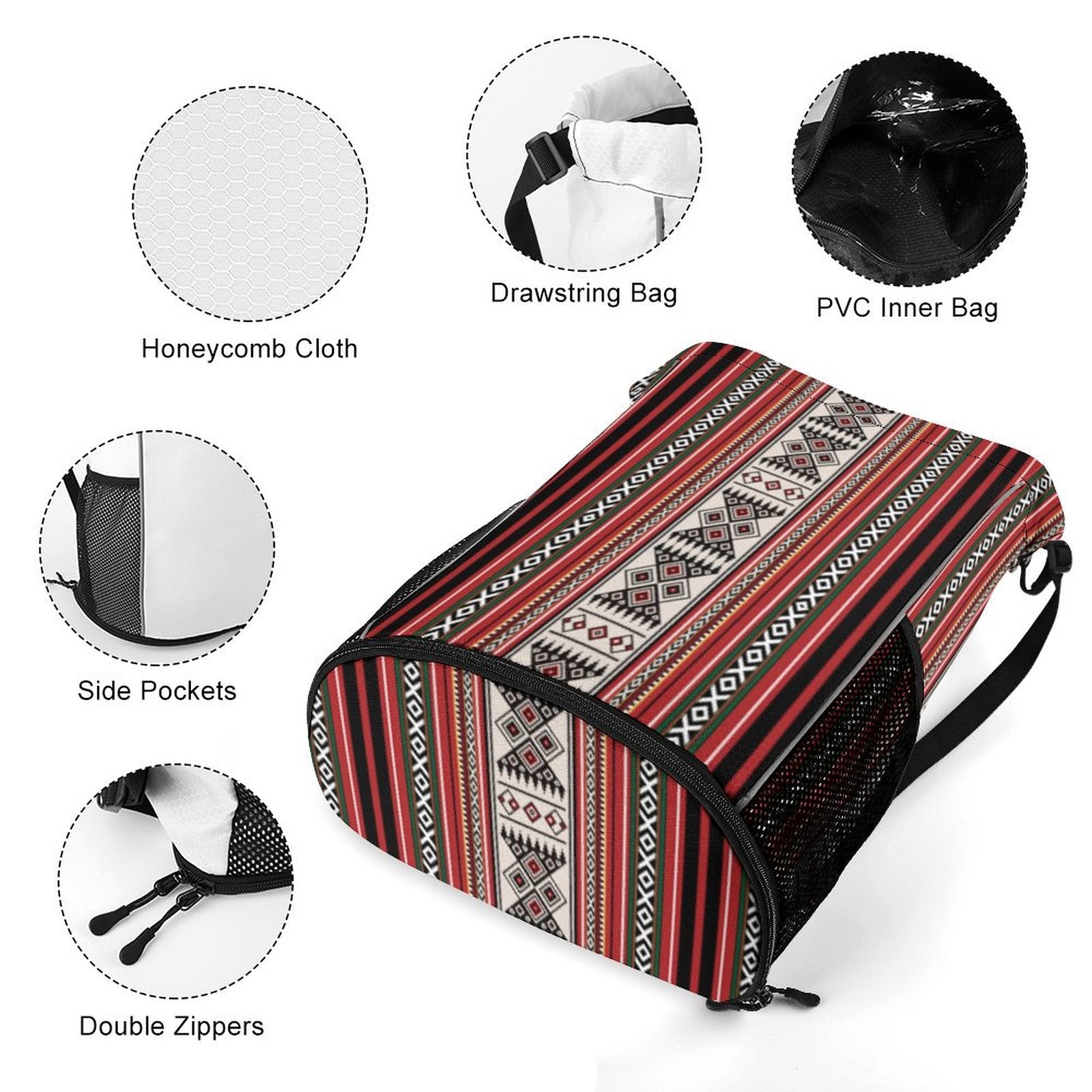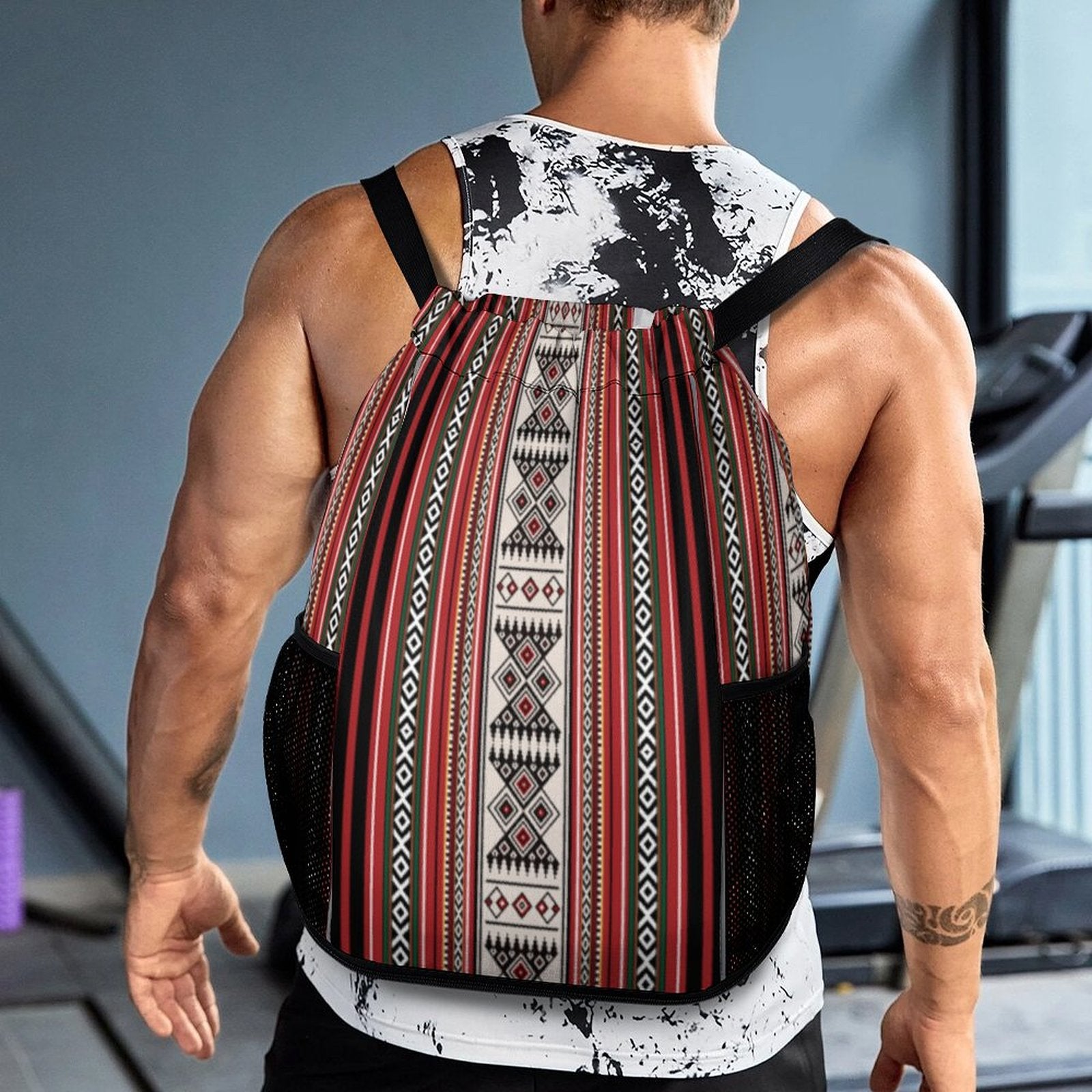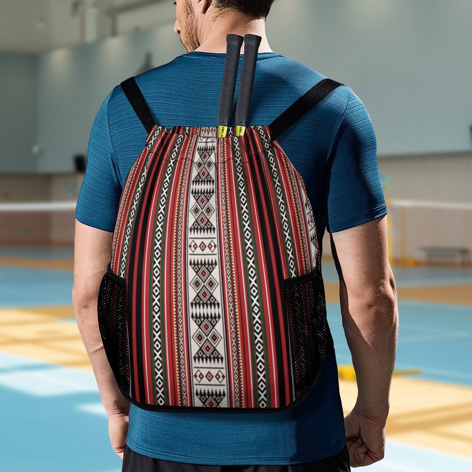 Inspired by the timeless spirit of desert nomads, this drawstring backpack blends Bedouin aesthetics with everyday functionality. Crafted from breathable honeycomb cloth and adorned with vibrant all-over printing, it’s a lightweight companion built for movement, adventure, and style.