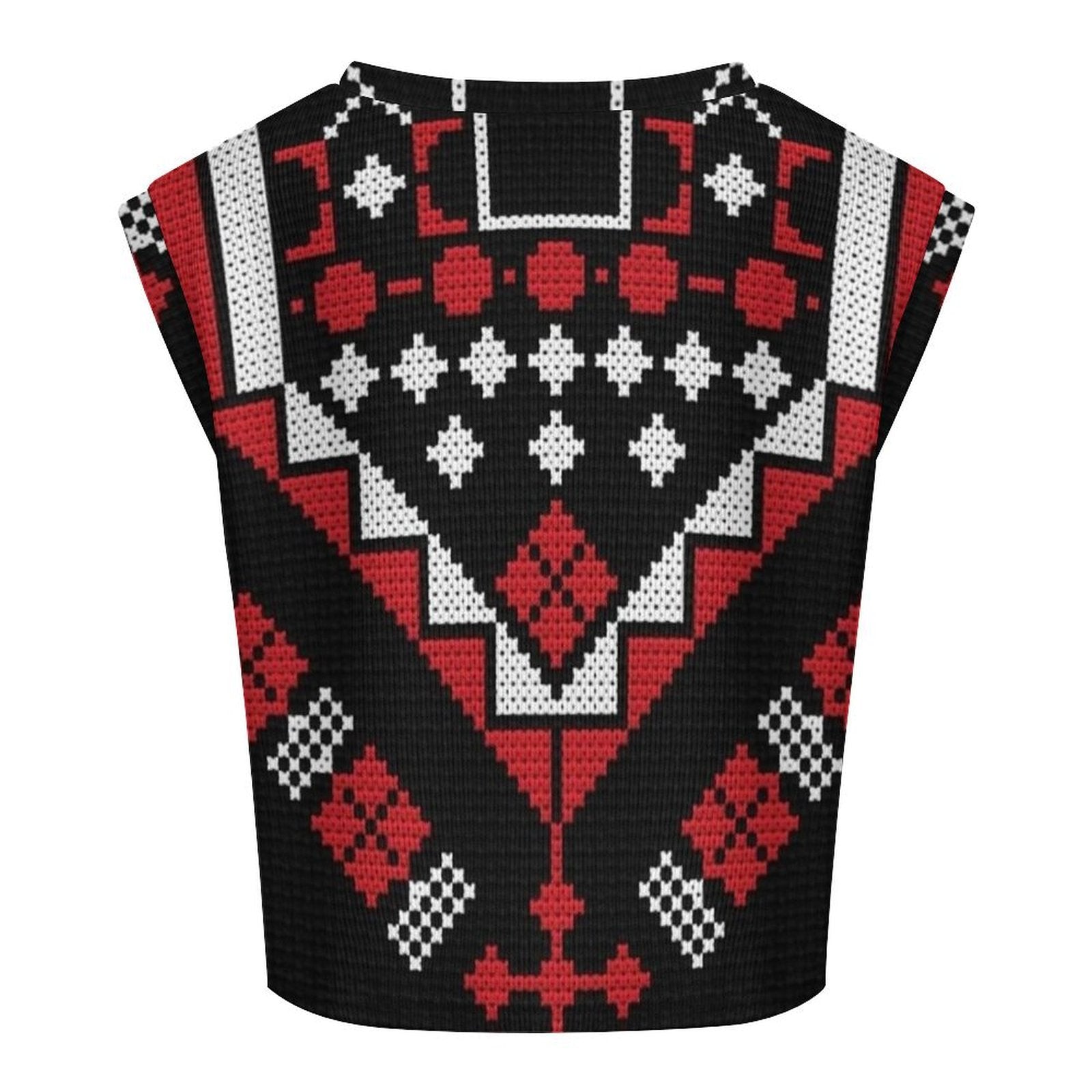 🌿 Cultural Elegance: Featuring a sleeveless cut with refined cap sleeves, adorned with a Palestinian tatreez print—a design that celebrates heritage, pride, and timeless artistry.