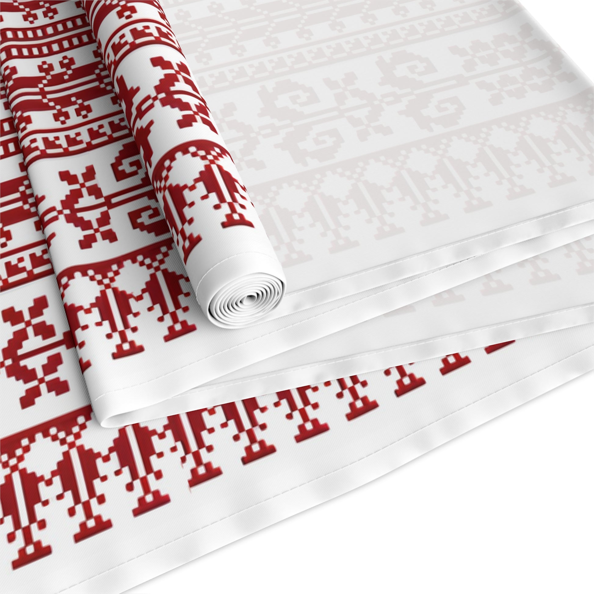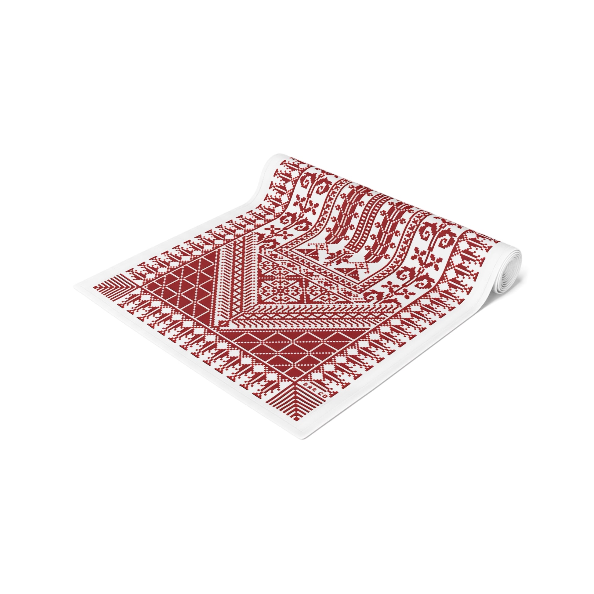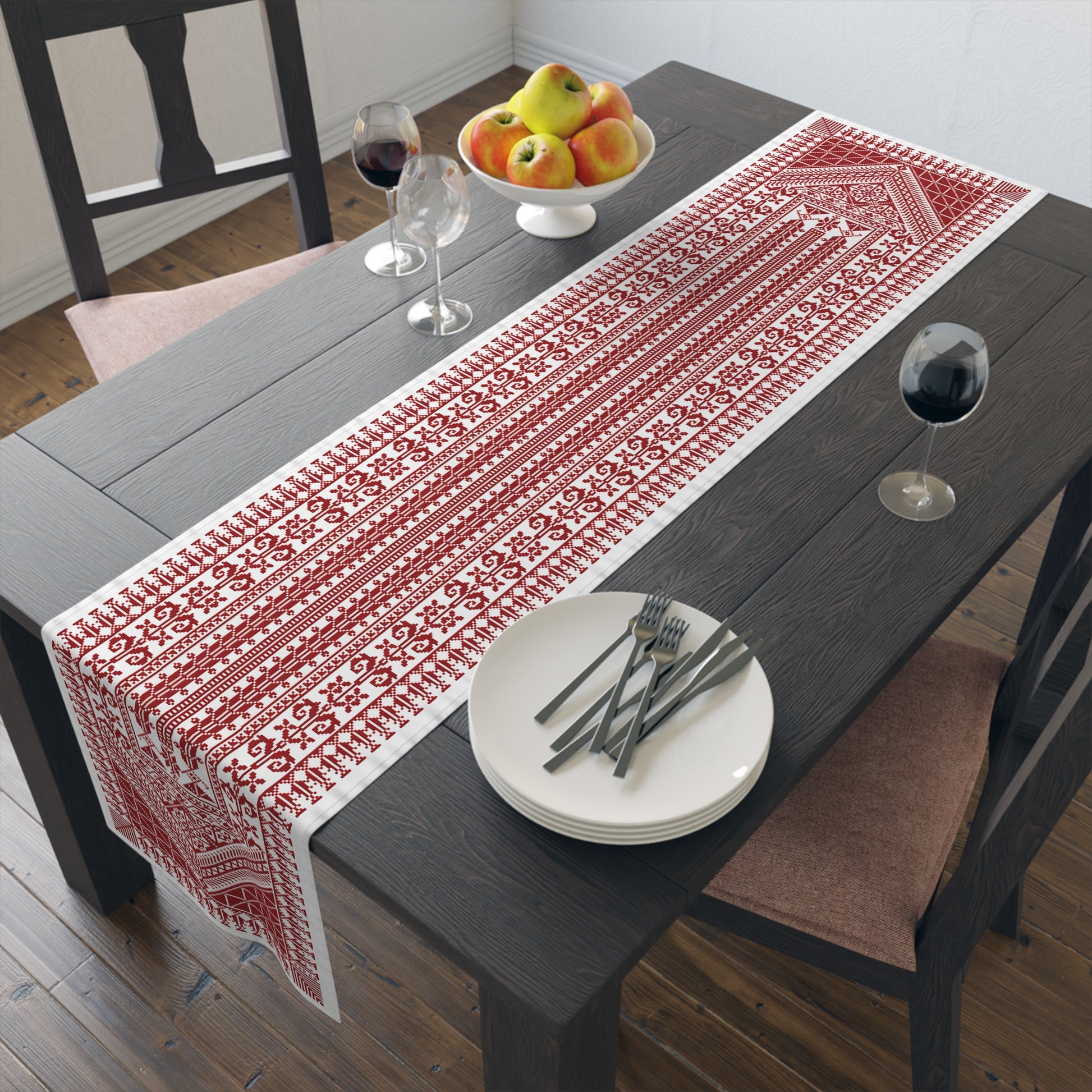 Ethnic Table Runner, Red Palestinian Tatreez Print, Cotton, 16" × 72"
