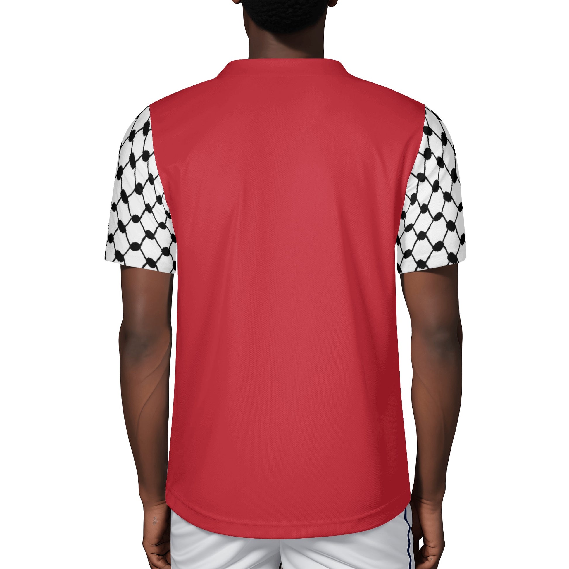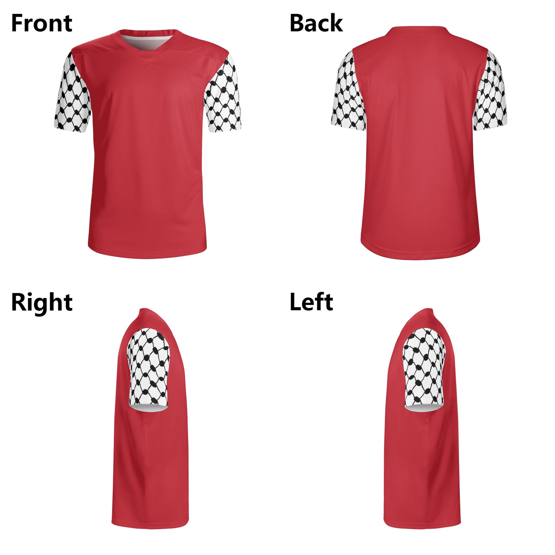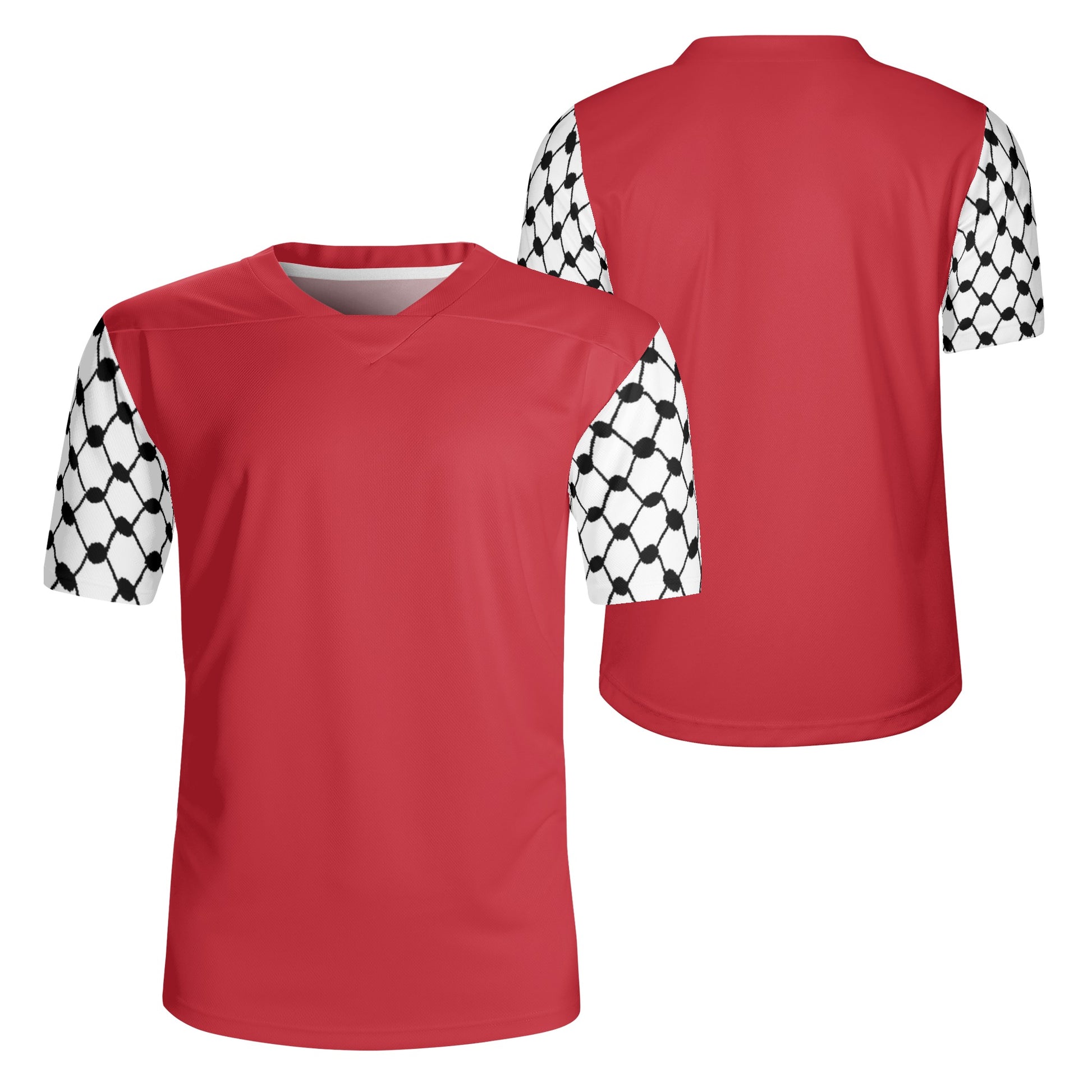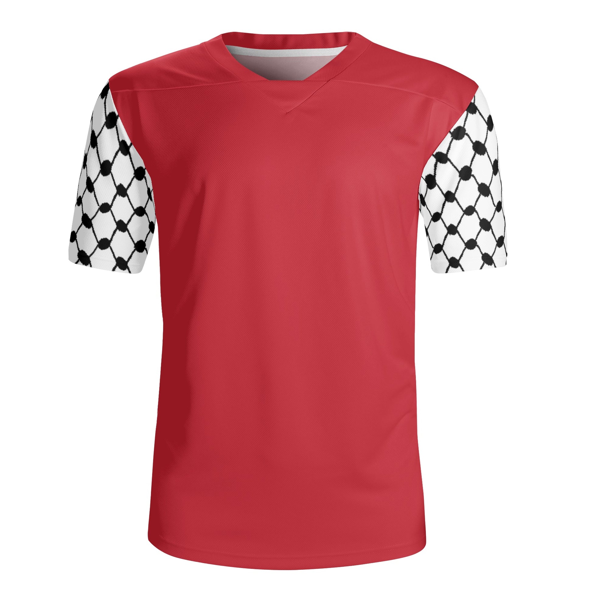 Palestinian Keffiyeh Sleeves Mens All Over Print Football Rugby Jersey, Red