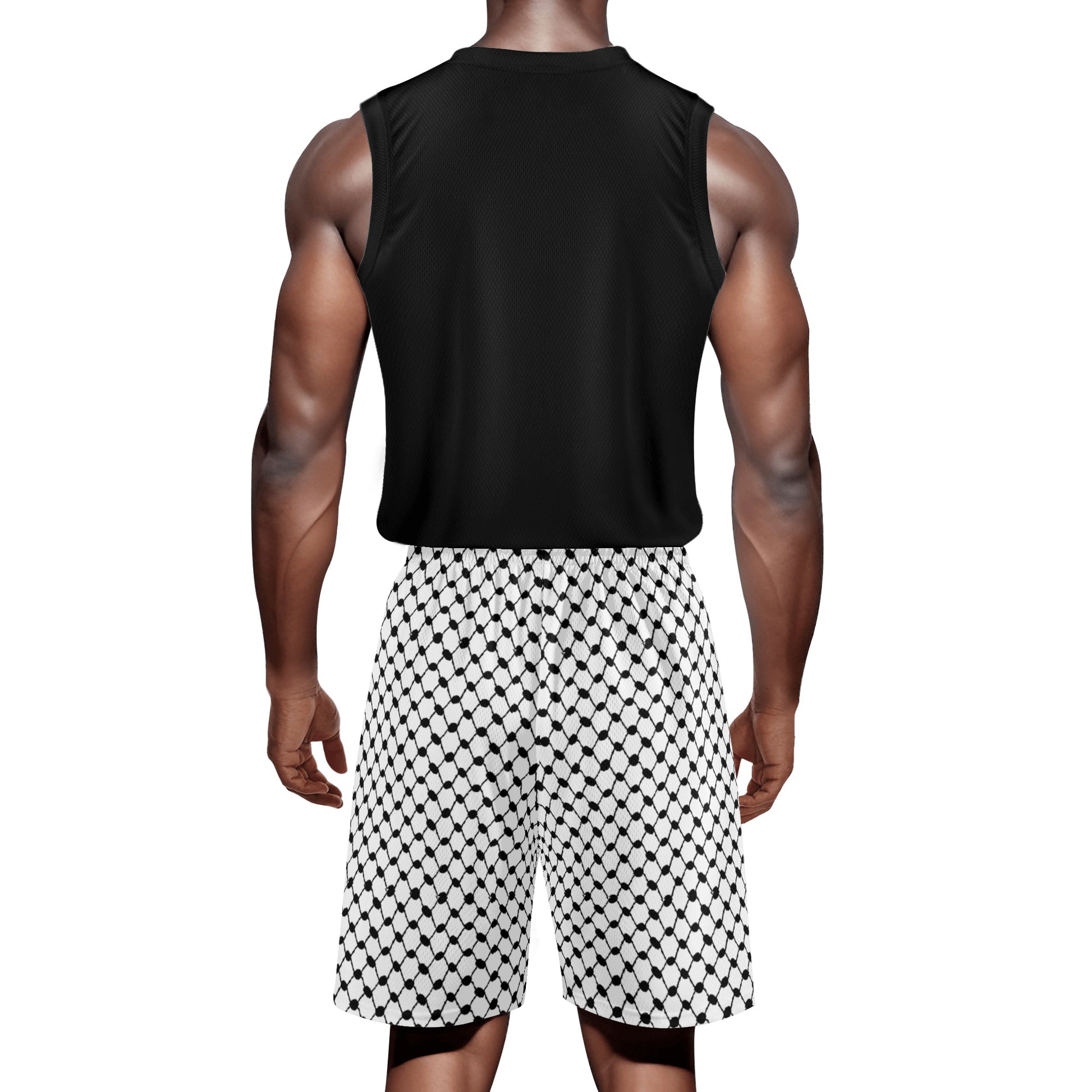 Elevate your basketball experience with our Palestinian AlQuds Adult Basketball Sports Uniform Jersey & Shorts, a tribute to the enduring spirit of athletes and the vibrant culture of Palestine. Meticulously crafted from premium polyester, this uniform is not just a piece of apparel; it's a testament to your dedication and love for the sport. Each seam is reinforced, ensuring that the uniform can withstand the intensity of practice sessions and heated games, while the durable pull-on closure guarantees a secure and comfortable fit through every jump, sprint, and dunk.