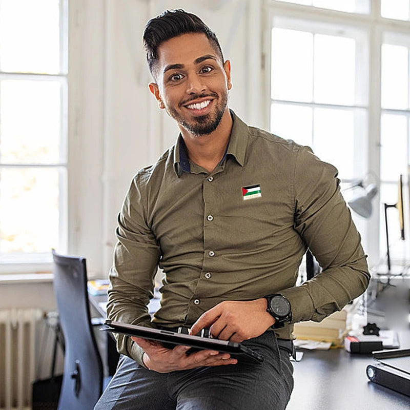 Make a bold statement of pride with our Palestinian Flag Brooch, a classic and timeless accessory that celebrates Palestinian heritage. This novel and trendy brooch is not only a fashion statement but also a symbol of patriotism and solidarity.