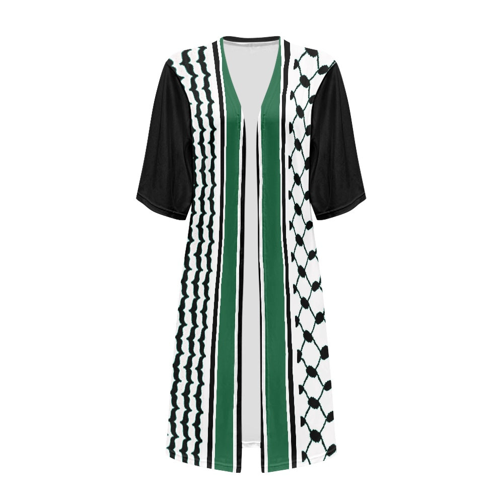 This Palestinian Kuffiyeh Women's Short-Sleeved Cloak seamlessly blends modern fashion with traditional elements, offering a unique and elegant addition to your wardrobe.