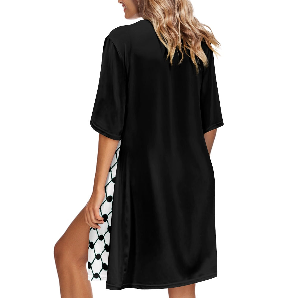 Embrace elegance and heritage with our Palestinian Kuffiyeh Women's Short-Sleeved Cloak. This stylish cloak is made from a premium blend of polyester and spandex, ensuring a comfortable and flattering fit.