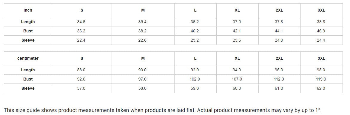 | centimeter | S | M | L | XL | 2XL | 3XL |