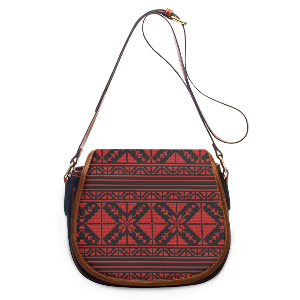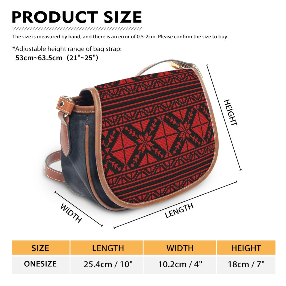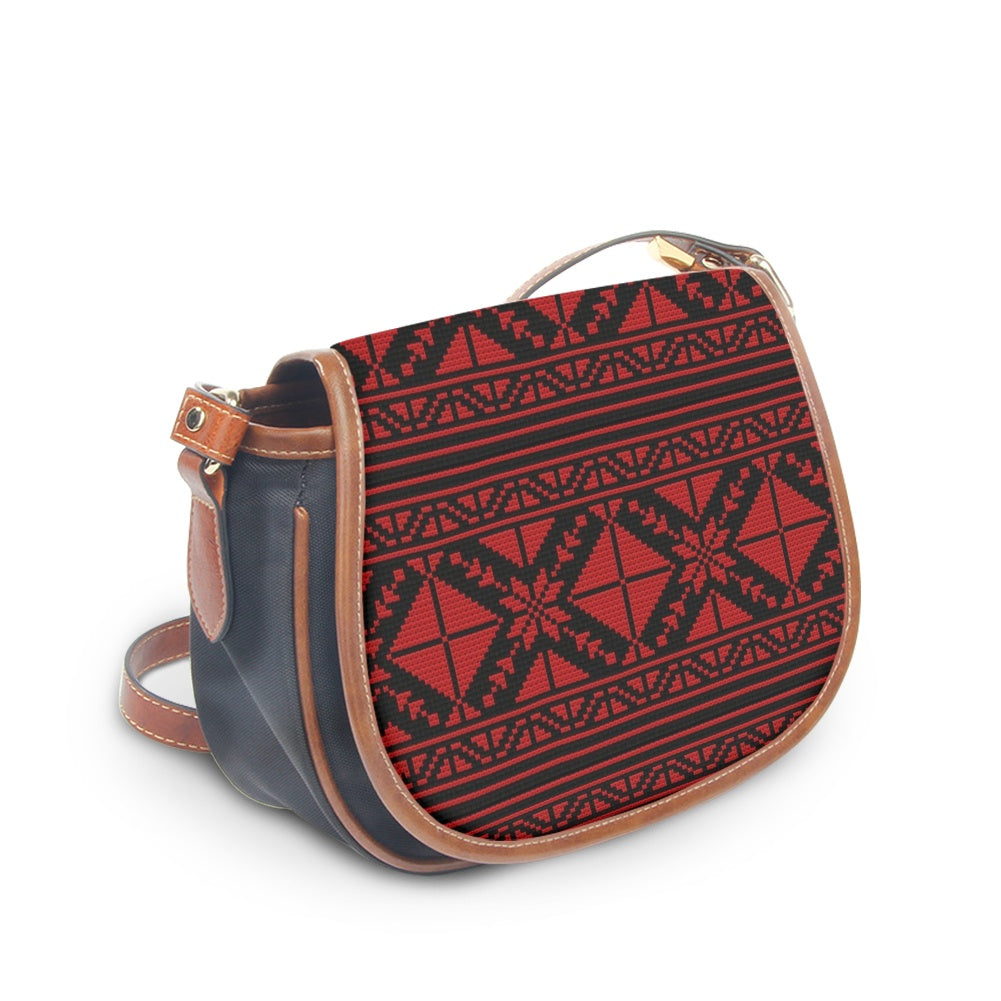 Celebrate Palestinian artistry and tradition with the Palestinian Tatreez Print Saddle Bag, a statement piece that combines craftsmanship with practicality for the modern-day fashion enthusiast
