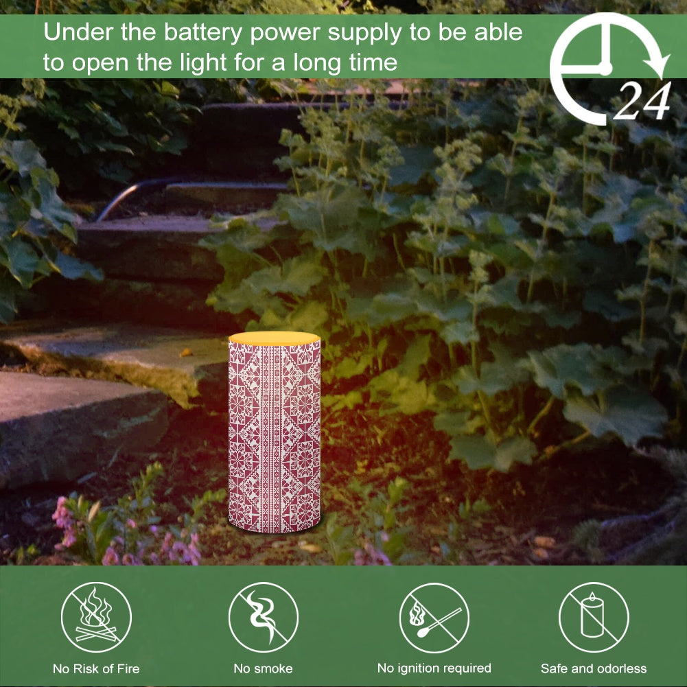 Illuminate your space with cultural elegance and modern convenience. This flameless LED candle features a stunning Palestinian Tatreez pattern, a traditional embroidery design that symbolizes heritage and artistry. Perfect for adding warmth and authenticity to any setting.