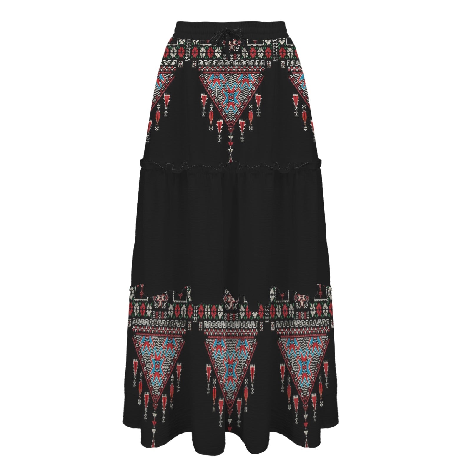 Tatreez Skirt Tether High Waist Tiered Maxi Skirt