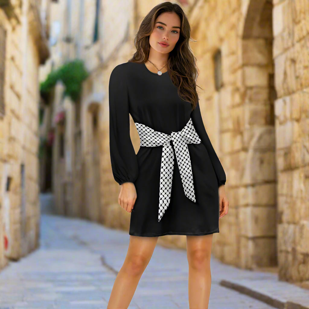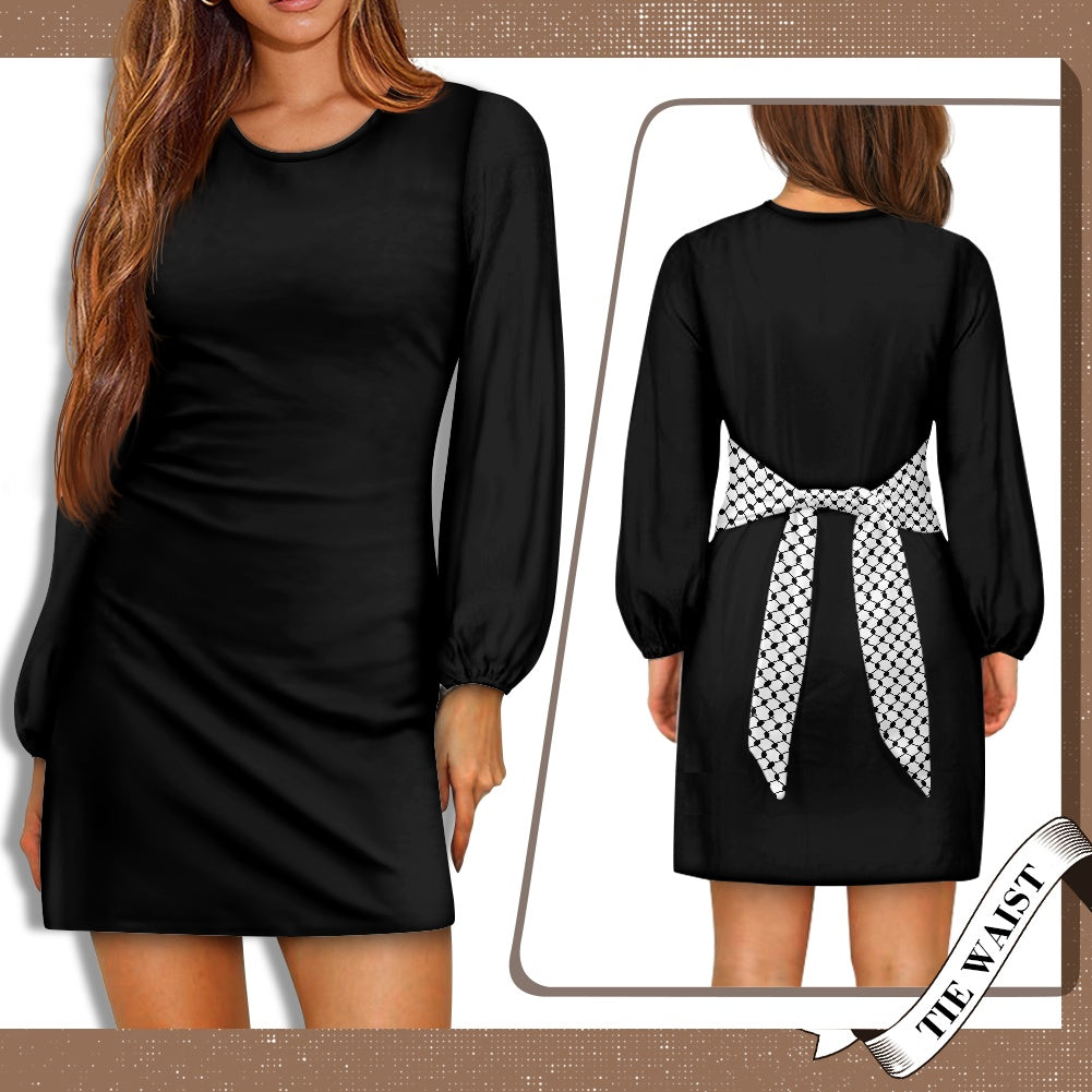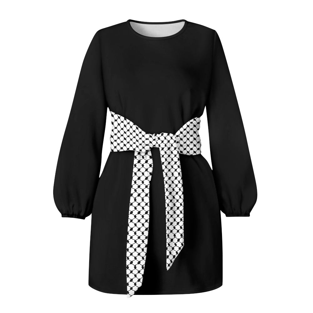 Keffiyeh Palestinian Waist Long Sleeve Tie Dress