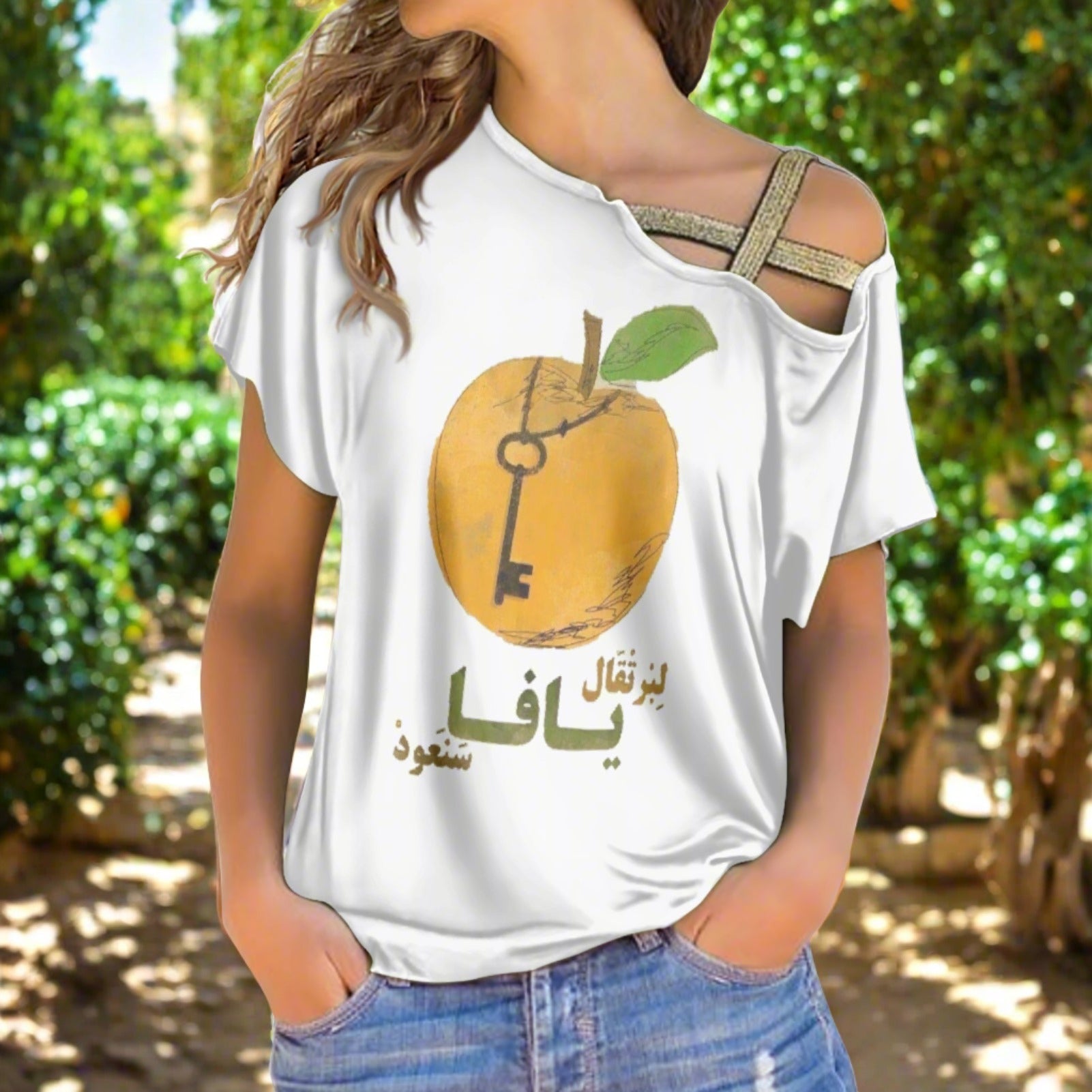 - Inspirational Message: Featuring the Arabic words "To Jaffa We Shall Return," this top is a meaningful expression of hope, resilience, and the enduring connection to Palestinian roots.