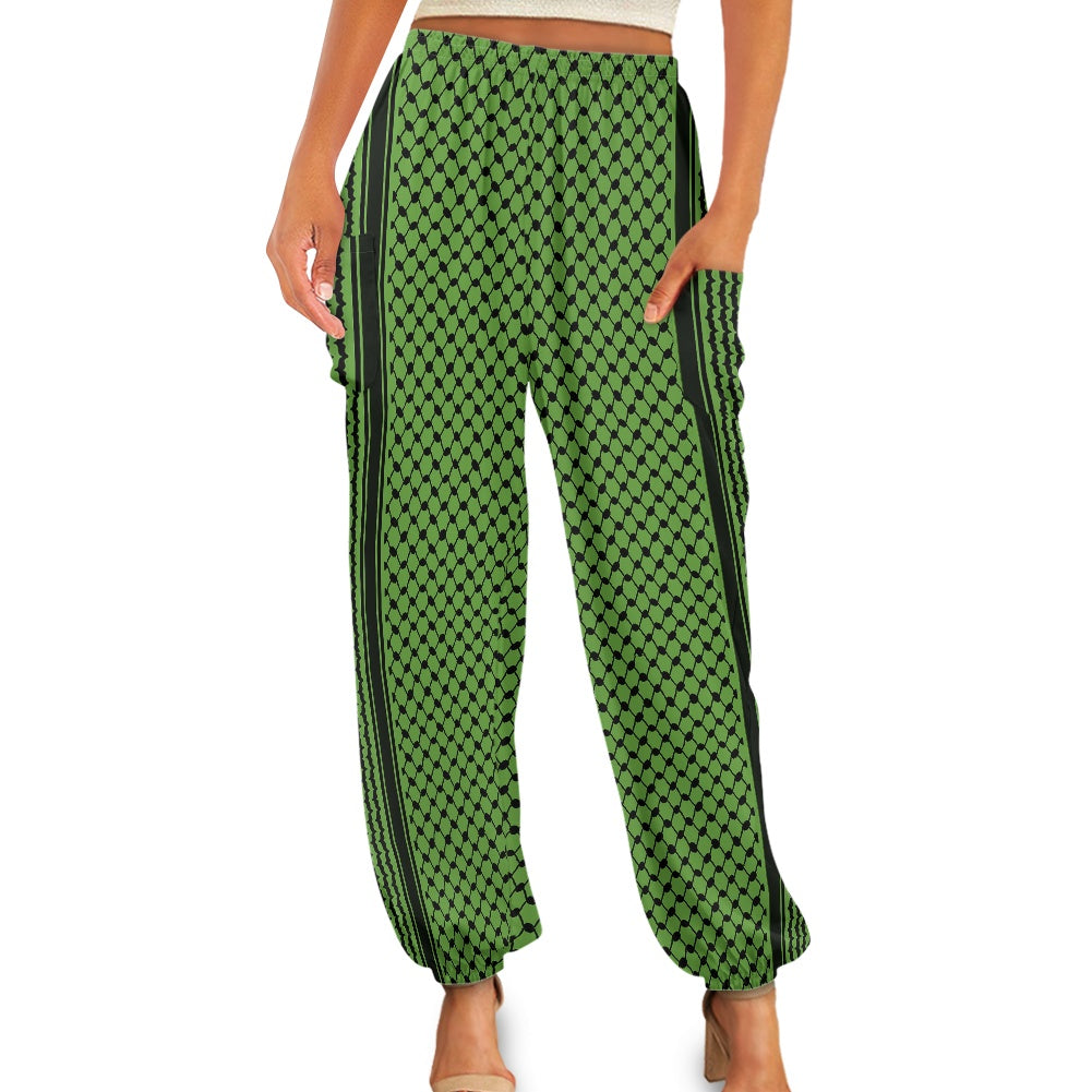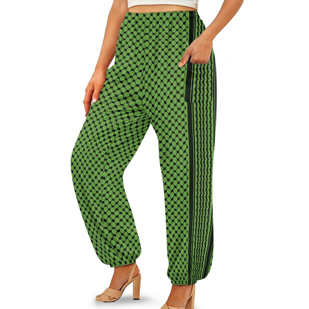 Palestinian Women's Bloomer Kuffiyeh print Green Yoga Pants