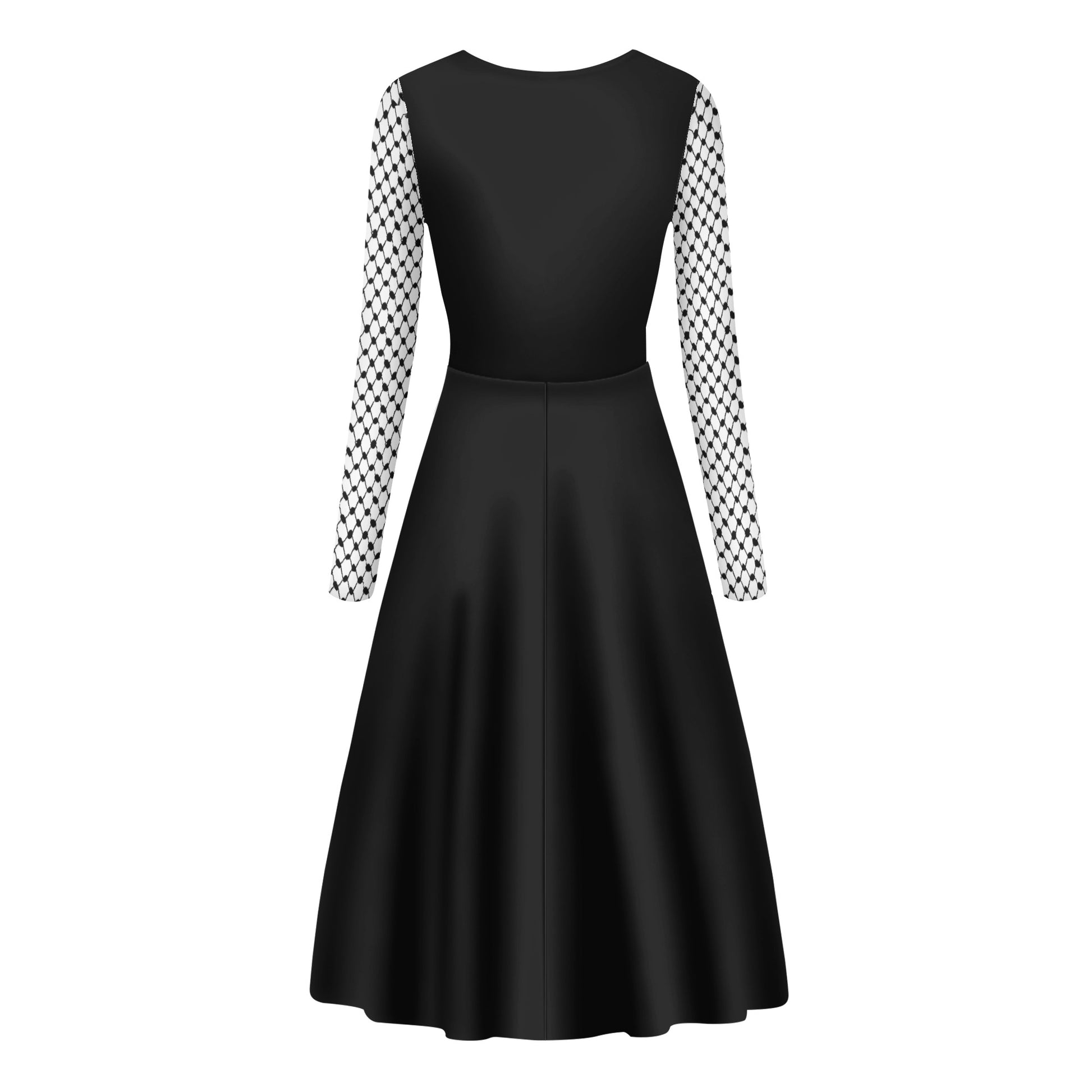 Step out in style with our exquisite Women's Long Sleeve Dabke Dance Dress, sporting a unique and culturally rich Palestinian kufiyeh pattern on the sleeves. This piece is more than just a dress; it's a statement of fashion and culture, designed to make you stand out from the crowd. Lovingly crafted from high-quality polyester fabric, this dress guarantees both comfort and durability without compromising on style.