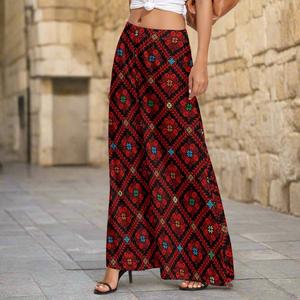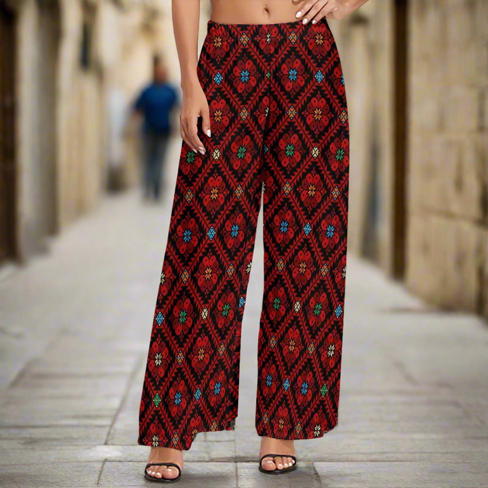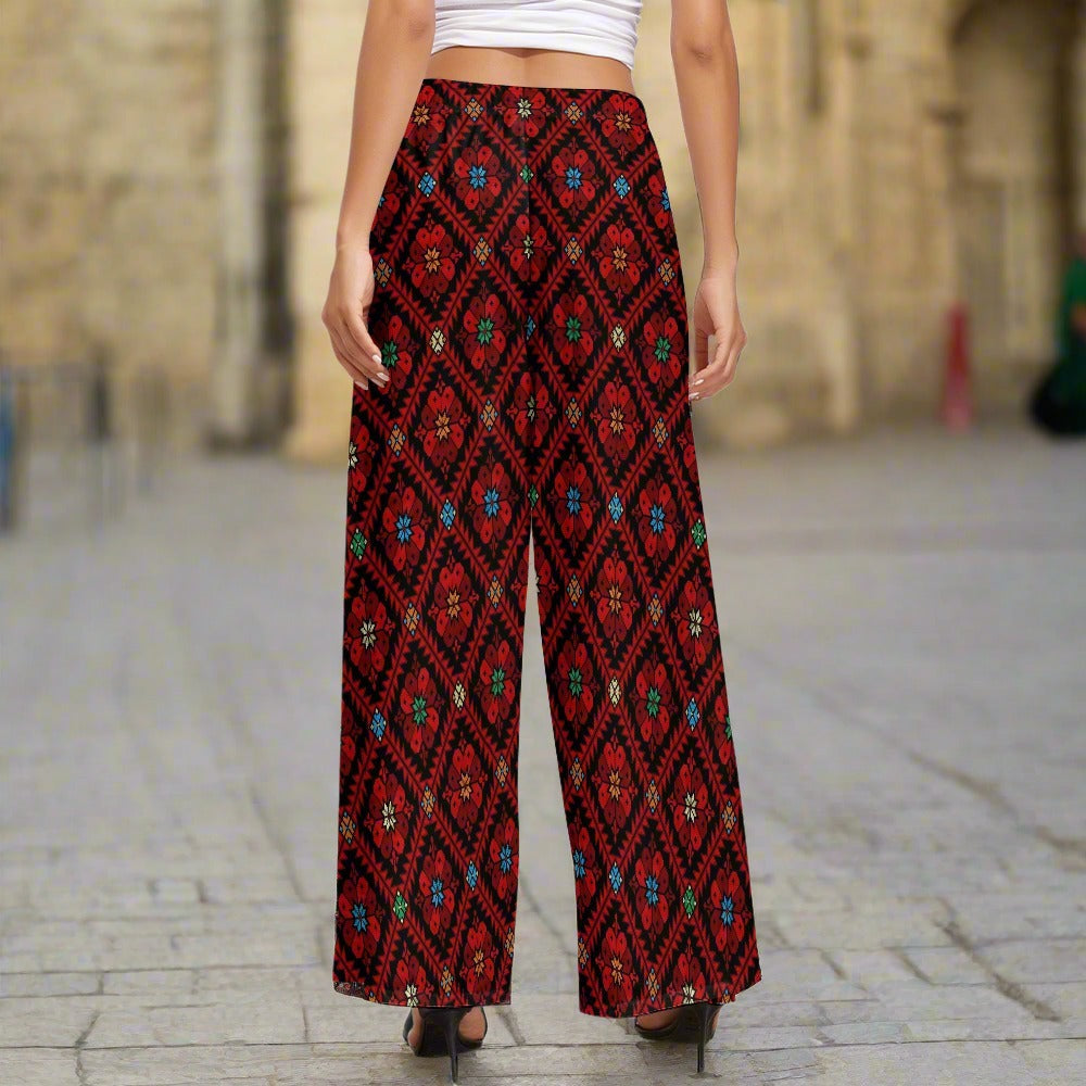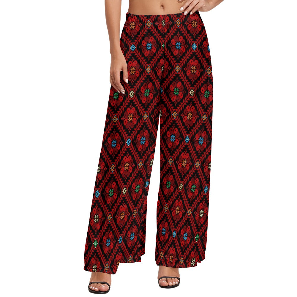 Ethnic Palestinian Tatreez Print Women's Wide Leg Pants